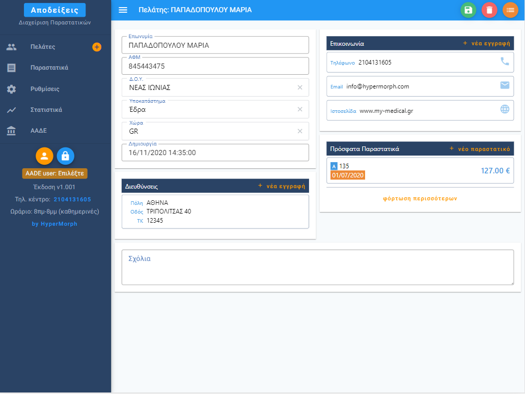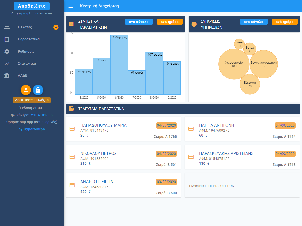• Επίσης, έχετε την επιλογή έκδοσης και των παραστατικών λιανικής σας μέσω παρόχου με προαγορά ειδικού πακέτου. (επικοινωνήστε μαζί μας για λεπτομέρειες)