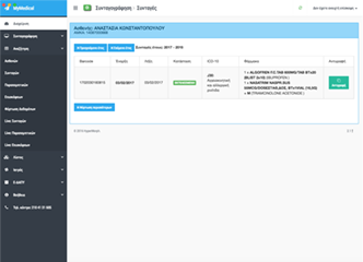 - Πλήρη στατιστικά, αναζήτηση συνταγών, παραπεμπτικών, επισκέψεων και ασθενών βάσει οποιουδήποτε κριτηρίου (πχ σκεύασμα, icd10 κλπ)
