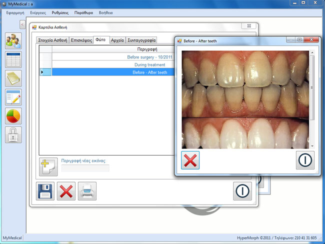 • Διαχειριστείτε εύκολα τα στοιχεία των ασθενών σας, τις επισκέψεις, το συνταγολόγιο, τα ραντεβού σας, δείτε στατιστικά στοιχεία και προσθέστε φωτογραφίες από περιστατικά καθώς και αρχεία word, excel, pdf κ.α. για κάθε ασθενή και για κάθε επίσκεψη.